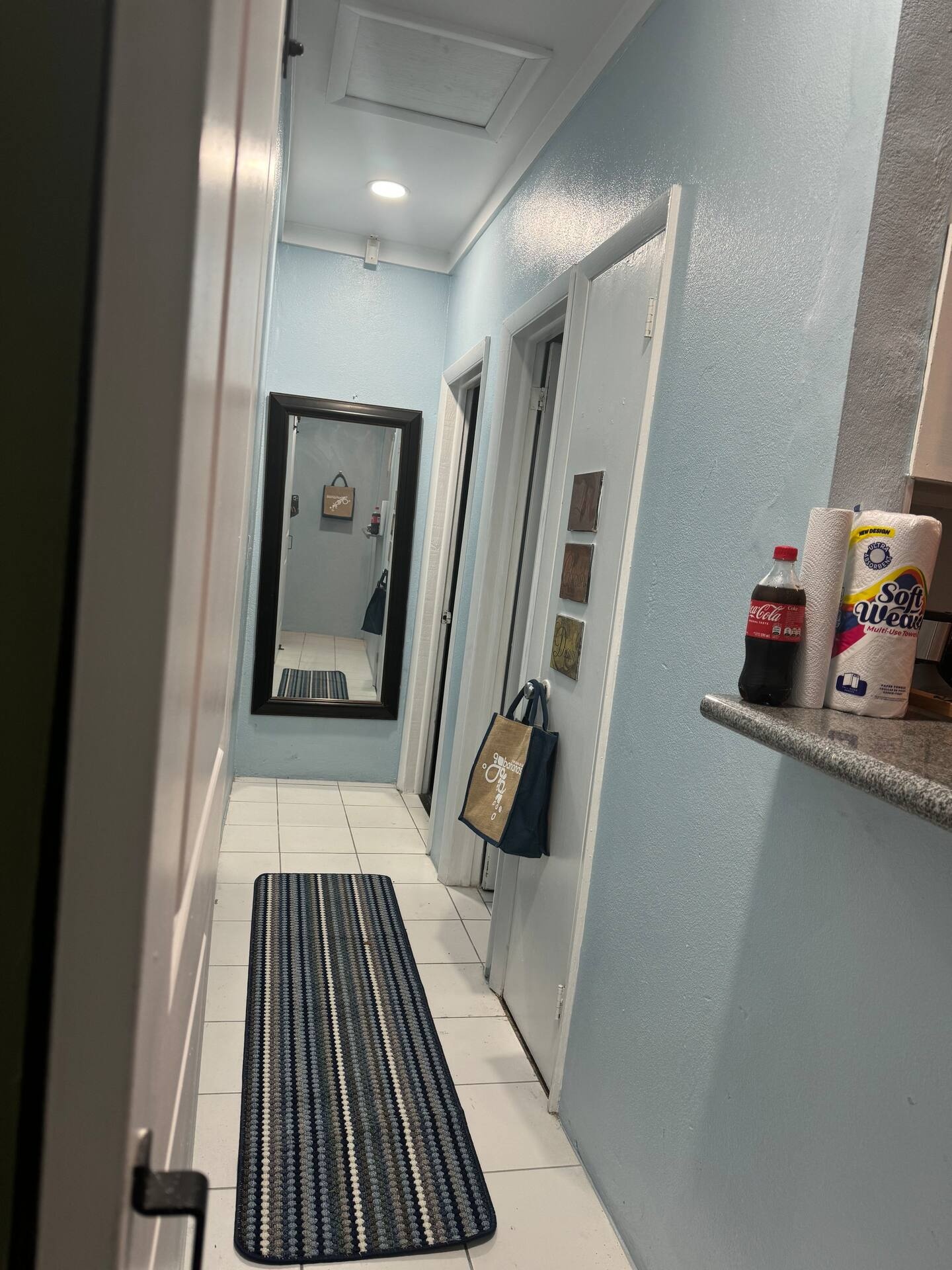 The unit includes a fully equipped kitchen with a countertop stove, refrigerator, and microwave, making meal preparation easy and convenient. There’s also a comfortable living room where you can relax and unwind during your stay.
